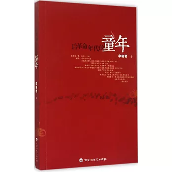 內容簡介: 《后革命年代的童年》着眼「愛」的主題,深入上世紀八十年代,在對童年記憶的深入挖掘中,展示了一個江南城鎮的歷史風貌和風俗人情,以及人們的生存狀態與精神圖景;探詢了一代人成長的隱蔽命運以及時代變化的顯性與隱性特征。