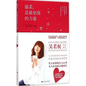 博客來書店 吳博客來網路書店若權,台灣最具代表性的暢銷書作家之一,連續多年獲得金石堂暢銷男作家前十名,全年度銷售冠軍。作品類型涵蓋兩性、職場、勵志、小說等,並在各個領域都有所斬獲。在《溫柔是最堅強的力量》中,吳若權以最理性的觀點,透徹剖析男女相處的細節,分享他對感情最柔軟的體悟。期望每一對戀人,能珍惜戀愛中的最美好的那份感動。